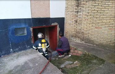 Los vecinos solicitan a Bomberos para inspección por ver salir humo y no localizar origen. Se localiza en un trastero, con entrada exterior, en los bajos del bloque.